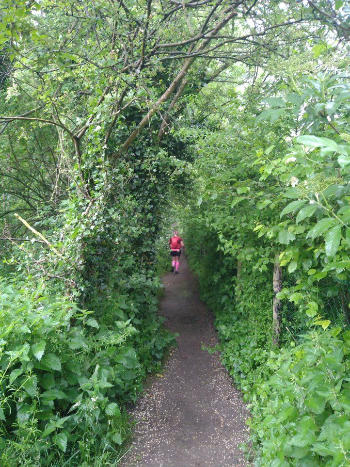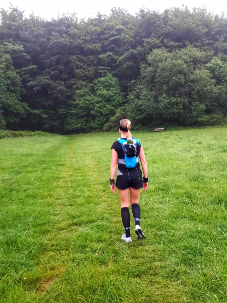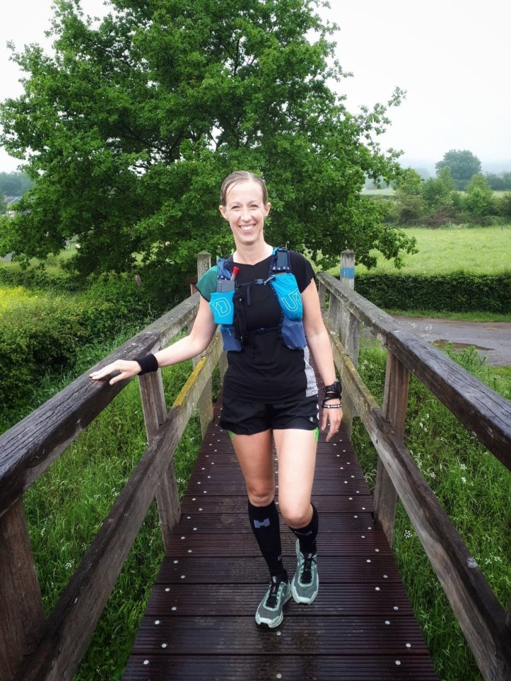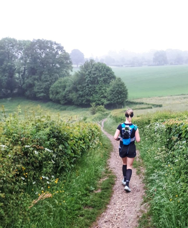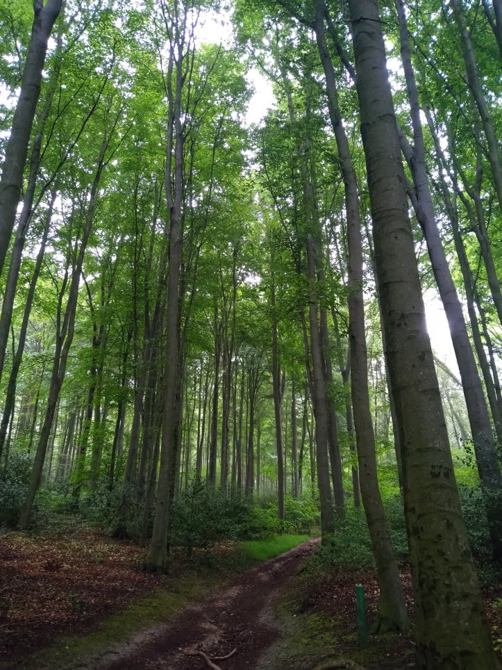5 juni, 04:30 uur in de auto, op naar Zuid-Limburg. De weersverwachtingen lijken perfect, niet zo heet als de dagen ervoor maar wel droog. Vlak voor start checken we de buienrader nog even en ja hoor, de regenjas kunnen we mooi in de auto laten liggen. We hebben ook al genoeg bagage op onze rug ;). Benieuwd naar de route, de omgeving, de ervaring; zin in dit avontuur vandaag! Na een half uurtje hollen begint het toch te miezeren…en zijn onze voeten ook al zeiknat door al het hoge gras waar de eerste paadjes doorheen lopen. Bij 25km hadden we gepland even te pauzeren, maar in de regen op een bankje zitten is niet echt genieten, dus we stoppen wel even om wat te eten maar lopen daarna ook snel weer door.