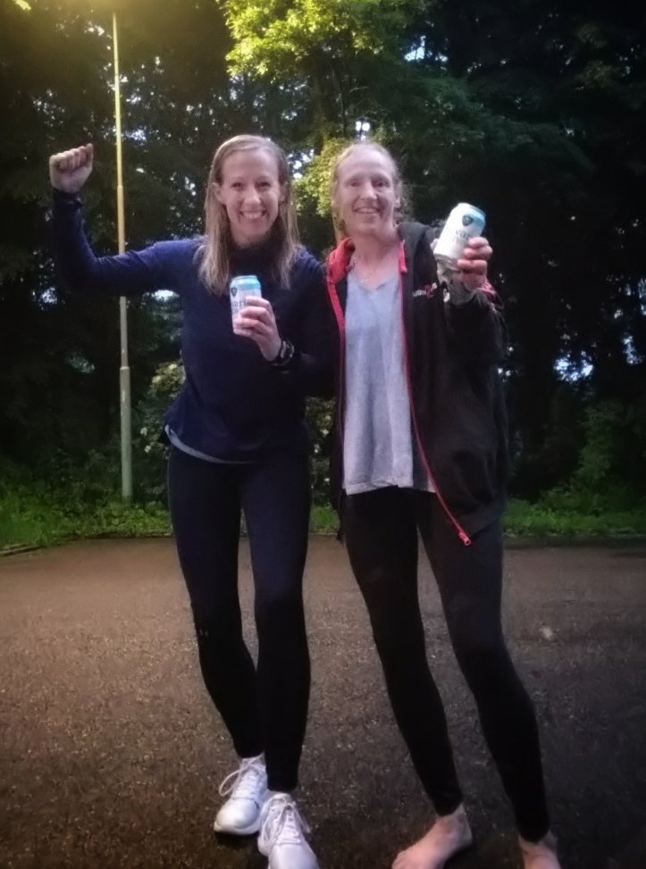 En daar is dan eindelijk de auto, ruim 15 uur nadat we vanmorgen vertrokken zijn. We hebben bijna 14 uur gelopen, ruim 86 kilometer en 2300 hoogtemeters in de benen! En dat doet pijn maar het is ons gelukt! Helemaal self-supporting, wat we stiekem extra stoer vinden van ons zelf ;). Ons finishbiertje met chips smaakt goed. De sinaasappel die we ook bedacht hadden rolt de parkeerplaats over…maar wij kunnen er niet meer achteraan dus die is voor de vogels:). We hebben af en toe wat foto’s voorbij zien komen van de trail in Noorwegen, daar scheen de zon wel volop vandaag. Zouden ze dat voor volgend jaar weer willen bestellen?