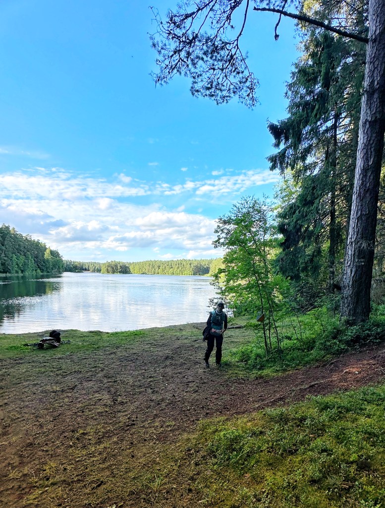 En wat is Estland prachtig. Groen en zoveel ruimte. We moeten wat punten zwemmend pakken, in een prachtig groot meer waar er hier veel van zijn. De eerste etappe is gelijk de langste, we zijn blij als deze erop zit. Door en door koud, we hebben zin om te gaan lopen. En dat gaat grotendeels lekker in de zon. Pittige stukken door het moeras, we zijn niet snel bang ergens te verdwalen maar hier is het toch wel even spannend, zo’n groot gebied zonder oriëntatiepunten. We blijven goed op koers. Daarna gelukkig ook stukken met mooie paadjes. Hele afwisselende bossen, de nodige hoogtemeters maar daardoor ook genieten van de uitzichten.