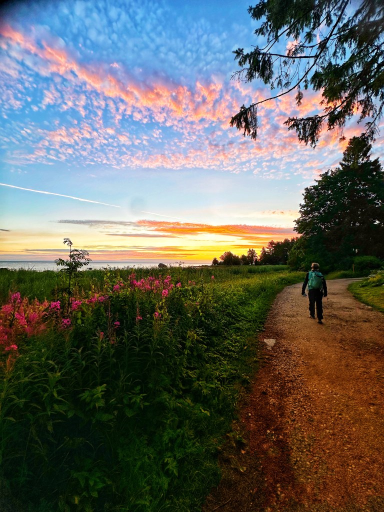 Regen en zon wisselen elkaar af, het is voornamelijk nat en koud maar een groot voordeel is toch wel de midzomernacht. Het is een paar uurtjes schemerig maar echt donker wordt het niet, zeker niet als je buiten de bossen bent. Dat helpt zo erg om niet moe te worden!
